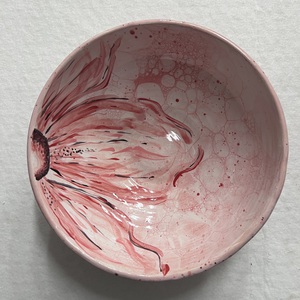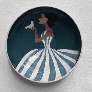 2023Tapas schaaltje van keramiek blauw met pelikanen Diameter 12 cm x hoogte 7 cm Geglazuurd Te koop samen met plank 25 euro, het schaaltje alleen 10 euro, plank 15 euro. Elke naam kan er ingebrand worden.
